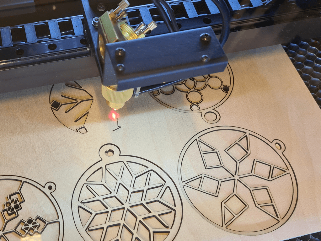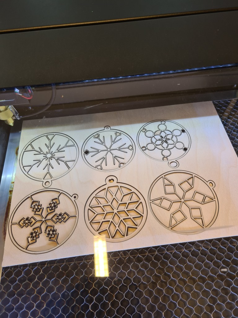 Laserkutteren er blitt et av mine yndlingsverktøy. For de uinnvidde, så er dette en liten laser som kan både kutte og gravere i en rekke materialer. I enkelte prosjekter kan den sees på som en moderne variant av svi-pennen, og det var nettopp slik ungdomsskoleeleven som hadde laget sitt eget sjakkbrett opplevde det, da han kom på besøk og vi graverte inn nydelige tall og bokstaver på rammen av sjakkbrettet. I andre prosjekter kan det det sees på som en pinlig nøyaktig saks, som klipper ut 100 snømenn og juletre i fleece til juleverkstedet, eller som en pinlig nøyaktig sag som lager snøkrystaller til juletreet som elevene har programmert i Scratch etter å skissert dem på papir. Mulighetene og prosjektene er mange.