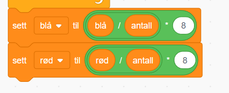 Om tallet er større enn 6 (altså 7 og 8) endrer vi variabelen blå med 1, og ellers endrer vi variabelen rød.