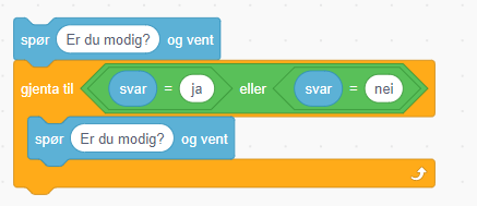 Vi lager en løkke, som ikke går videre før brukeren har svart «ja» eller «nei» på spørsmålet.